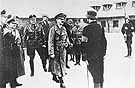 The Führer inspects the Sachsenhausen concentration camp, located near Berlin. Built in 1936, Sachsenhausen followed Dachau as one of the first camps built to imprison political enemies of the Nazis. After Kristallnacht, about 1800 Jews were arrested and sent there, of whom some 450 never left. Forced to run a gauntlet of vicious beatings, many died from their injuries while others were executed.