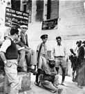 With increasing persecution, many Jews sought refuge in Palestine. However, the British were fearful of alienating their Arab allies and hence resisted opening up Palestine as a Jewish homeland. An expanding Jewish population angered Arabs, who were also spurred to action by Nazi propaganda. Beginning in 1936, there were sustained attacks on Jewish communities. In an effort both to protect and to control the Jewish population, the British required travel permits. Here, Jews of Haifa are pictured waiting for their permits, without which they could not legally leave the city.