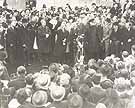 September 29-30, 1938: The Munich Conference is attended by French Premier Edouard Daladier, British Prime Minister Neville Chamberlain, Italian dictator Benito Mussolini, and Hitler. Climaxing the Allies' appeasement policy, France and Great Britain permit Germany to illegally annex the Sudetenland of Czechoslovakia. Most of Europe breathes a sigh of relief because war is averted. Daladier, observing the huge crowds awaiting him at the Orly airport near Paris, fears that they will tear him apart for betraying France's Czech ally. After he lands, he is relieved when his people throw roses at him.