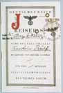 The cover page of this German passport, issued to Karoline Ruelf, is stamped with the letter "J" for Jude (Jew). Heinrich Rothmund of the Swiss federal police instigated the recall of all Jewish passports. Swiss officials were worried that German Jews would attempt to pose as Christians and smuggle themselves into Switzerland. The large, red "J" on their passports was an attempt to curtail the movement of German Jews and reassure the Swiss government.