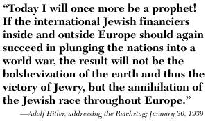 Adolf Hitler celebrates the sixth anniversary of his appointment as German chancellor with a major foreign policy address. Standing in front of the newly reconstituted German Reichstag, Hitler threatens to exterminate the Jews of Europe if war breaks out between Germany and the Western Allies. Seen as sensationalist propaganda at the time, the threat to destroy European Jewry assumed prophetic proportions in the aftermath of the Holocaust.