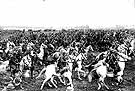 Fearing a possible German invasion, Polish cavalry train with lances that would be used to "joust" with tanks. While such tactics evidenced a great deal of bravery on the part of Polish soldiers, they were, of course, useless in the face of the Germans' modern machinery.