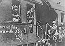 A German military train bound for Poland at the outbreak of the war bears an inscription that reads, "We are traveling to Poland to thrash the Jews." With 3.3 million Jews residing in Poland, Nazi plans for the racial reordering of Europe were put to their first major test. Rapid military victories were followed by massive relocations of Polish gentiles and Jews. Jews were concentrated in urban centers and placed under the authority of the SS. The process of ghettoization was an important step in the future destruction of Polish Jewry.