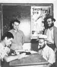 Young Jewish men volunteer for service in the British Armed Forces at a recruitment office in Tel Aviv, Palestine. The poster in the background reads, "Your place is here, enlist!" With the outbreak of war in Europe, David Ben-Gurion of the Jewish Agency Executive encouraged Jews to join the struggle against Hitler. About 26,000 Palestinian Jews as well as 90,000 from the British Commonwealth fought in the British Army.