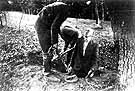 Two Polish Jews are forced to dig their own graves. This was a common practice throughout the Holocaust. Not only did this reduce the work of the Nazi murderers, but it also had the effect of further denigrating the victims as they went to their deaths. The dehumanization of the victims made it easier for the Germans to carry out their grisly tasks.