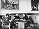 Senior SS officers meet at Gestapo headquarters in Munich in November 1939. Pictured from left to right are Gestapo chief Heinrich Müller; Franz Josef Huber, leader of the Gestapo in Vienna; SS Chief Heinrich Himmler; Reinhard Heydrich, head of the Security Service (SD); and Arthur Nebe, chief of Kripo (criminal police). They may have discussed the role of the German police forces in the newly acquired Polish territories.