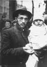 A young Jewish father stares bleakly into an uncertain future while holding his child in his arms. Child rearing in the ghettos of Poland subjected parents to an endless array of anxieties and cruel choices. Children were the first to be deported and often were the targets of sadistic soldiers. Parents were deprived of adequate food, clothing, and the freedom needed to nurture young human beings, and thus were incapable of protecting their children from tragic and unfortunate existences. The memories of suffering and abandoned children plagued all those who experienced life in the Polish ghettos.