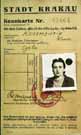 This was the official identification card, issued by the Kraków district of the Generalgouvernement, of Cyrla Rosenzweig. She survived the war as one of the famous "Schindler Jews." Oskar Schindler saved over 1000 Jews from the death camps by employing them in his munitions factory and using his influence to stave off efforts to deport them.