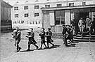 Prisoners at Plaszów, Poland, carry loaves of bread to feed workers at the Madritch factory, where German Army combat uniforms were manufactured. Plaszów was first a labor camp policed by Ukrainian guards, but in 1944 it became a concentration camp controlled by the SS.
