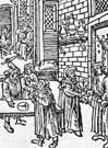 Nazi antisemitic propaganda drew inspiration from a 2000-year, anti-Jewish tradition that had been cultivated by Christian churches. The stereotyped and wholly false image of Jews as the "killers of Christ" persisted through the centuries. Desecration of the crucifix (pictured) has been another common theme. At times, Jews were humiliated, expelled from countries, and even massacred. Forbidden from marrying Christians, Jews were forced to wear identifying clothing, restricted to certain occupations, and often segregated in certain sections of towns. Failure during the medieval period to convert Jews to Christianity resulted in greater fear, suspicion, and hatred. Caricatures depicted Jews in satanic imagery. Even more harmful was "blood libel," charging Jews with ritual murders of Christian children. The myth circulated even into the 20th century that Jews used the blood of Christian virgins in baking matzo for Passover. Sixteenth-century Protestant reformer Martin Luther was a virulent antisemite in his later years. Angered by the Jews' refusal to convert, he unleashed the scathing tract On the Jews and Their Lies, depicting them as Christ killers and criminals bent on ruling the world. Luther advocated burning synagogues, schools, and homes, and driving Jews "like mad dogs out of the land." The Nazis prominently displayed this treatise at Party rallies.