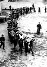 In 1943 France's Vichy government created the Milice, a collaborationist paramilitary organization headed by Joseph Darnand, which sought both to maintain order in France, remold it in the Nazi image, and fight enemies of the Vichy regime. Most of its members, including special groups for women and children, came from the Service d'order légionnaire, a war veterans group dedicated to protecting the Vichy regime. This photograph shows Milice troops marching members of the Resistance into an internment camp on June 2, 1944.