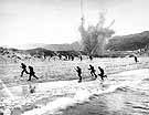 American, British, Canadian, and other Allied troops landed at Normandy, France, on June 6, 1944. The invasion forced Germany into a two-front war (with the Soviets attacking from the east), a war Germany could not win. Although held up for weeks in the difficult Norman terrain, the Allies eventually broke through. They then swept quickly across France and approached Germany's borders by December. As the Allies gradually conquered territory, they encountered and liberated concentration camps.