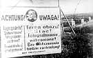 Although many people in Germany and Occupied Europe knew what was happening to the Jews, the Nazis made an effort to conceal their crimes. Outsiders, for example, were discouraged from going near the camps, and it was almost impossible to visit one. This sign at Majdanek, written in both German and Polish, reads: "Attention! Camp grounds. Stop! No photography! You will be shot without warning!"