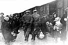 A Jewish policeman shakes the hand of one of more than 1000 Jews who are about to leave the Westerbork, Holland, concentration camp in early September 1944. Of the 1019 Westerbork prisoners who arrived in Auschwitz in early September, 549 were immediately sent to the gas chambers. Among those admitted to the camp on that day was Anne Frank, young author of the famous diary. Killings would continue at Auschwitz for another five months, a fact that is particularly terrible because Allied aircraft had gained the ability to bomb the camp complex in the autumn of 1943.