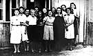 The secretarial staff of Oskar Schindler's enamelware factory in Kraków assembles for a group photograph. Intensely loyal to the people who worked for him, Schindler risked his own life to rescue his 300 female workers when they were mistakenly sent on a train to Auschwitz, instead of to safety in Brünnlitz in the Sudetenland, where Schindler had opened his new factory.
