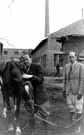 Oskar Schindler poses with his horse at "Emalia," his enamelware factory. Known for his cosmopolitan tastes and love of luxury, Schindler also recognized the need surrounding him, reaching out in small gestures of humanity to his workers. Leon Leyson, then a boy working in the factory, vividly recalls how Schindler repeatedly intervened to save him and his family, even remembering to order an extra ration of soup for the hungry boy.