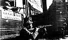 By the fall of 1944 the German situation in Poland was crumbling rapidly, as Soviet forces advanced westward through the country toward Germany. And so the Nazis, who had enjoyed absolute mastery over Poland's residents not long before, now found themselves fighting a defensive war with a foregone conclusion. The horror, of course, is that this turn of events came too late to prevent the extermination of three million of Poland's 3.3 million Jews. Here, Polish fighters armed with submachine guns take aim at Nazi troops at Praga, a Warsaw suburb.