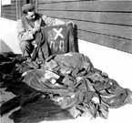 This American GI, among those who liberated the Natzweiler-Struthof camp, inspects the markings on a prisoner's clothing. The letters "NN" stand for Nacht und Nebel (night and fog). The Night and Fog decree, issued by Hitler on December 2, 1941, was intended for use against sabotage organizations and those guilty of espionage. They were to be executed upon capture or, if that did not prove practicable, deported to the Reich for trial. Most such prisoners were first sent to Natzweiler.