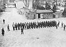 Roll call at Oranienburg, Germany, the concentration camp built on the Havel River. Like other camps within Germany before the war, Oranienburg was not as harsh a camp as those that would open during the war. In addition to the standard fatigue duty and drill, prisoners were allowed occasional recreational opportunities. Nevertheless, the regimentation of daily routines and the ever-present armed guards reminded prisoners of their status.