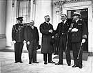 While the Nazis unleashed a terror campaign against political opponents at home, it was business as usual on the diplomatic front. Here Hjalmar Schacht, president of the German Reichsbank, shakes hands with U.S. President Franklin Delano Roosevelt (right) at an economic conference in Washington, D.C. Roosevelt was inaugurated as U.S. president on March 4, 1933, and would remain his country's leader for nearly the duration of the Holocaust.