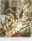 Jewish ritual slaughter was a frequent target of Nazi propaganda. Seen as barbaric and demonstrative of Jewish cruelty, ritual slaughter was prohibited by the German government in April 1933. This page from the antisemitic children's book Der Giftpilz (The Poisonous Mushroom) contained the following text: "Again the animal falls to the ground. It is slowly dying. The Jews, however, are standing around and laughing about it." The message to impressionable German youth was clear: Jews took pleasure in and were entertained by killing innocent animals.