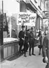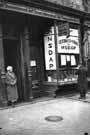 A pedestrian eyes the National Socialist paraphernalia on display at a Nazi headquarters in Yorkville, Pennsylvania. Biographies of Hitler, the party newspaper (Völkischer Beobachter), and other items could be purchased by individuals who either supported or were curious about the Nazi movement. Hitler's government was seen by many native Germans living in the U.S. as a needed corrective to the ineffective governmental regimes of the earlier Weimar Republic.