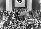 Reichstag members enthusiastically salute Hitler after his address justifying the death of several dozen Nazis in the Night of the Long Knives on June 30,1934. The Blood Purge eradicated the leadership of the Brown Shirts (SA), the quasimilitary organization led by Ernst Röhm, along with scores of other potential enemies.