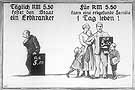 This illustration from a filmstrip produced by the Reich Propaganda Office demonstrates that for the 5.50 Reichsmarks it costs to feed, house, and clothe one disabled person for a single day, an entire healthy German family could survive. Propaganda such as this helped prepare the German people for the murder of those deemed genetically inferior.
